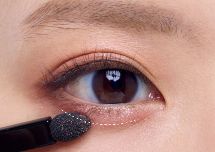 「ブラウンアイパレ同様、ワンカラーで囲むのがポイント。グラデーションにすると、少し古いイメージになってしまいます。涙袋は自然にぷっくりさせ、可愛さをちょい盛り!」(ヘアメイク・長井かおりさん)