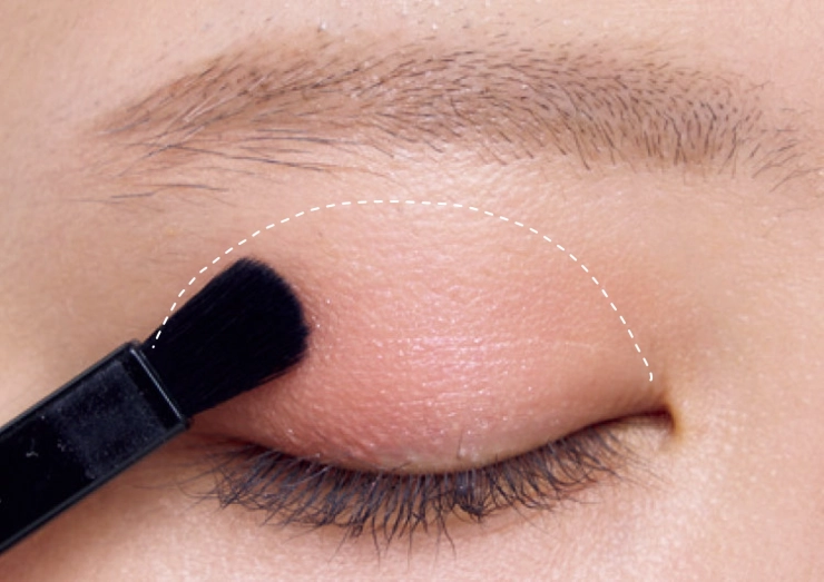色使いに迷ったら、混ぜて1色にしてのせるのがおすすめ。Aの中間色の②と③をブラシで混ぜ、まぶたを囲むようにふわっと色づける。