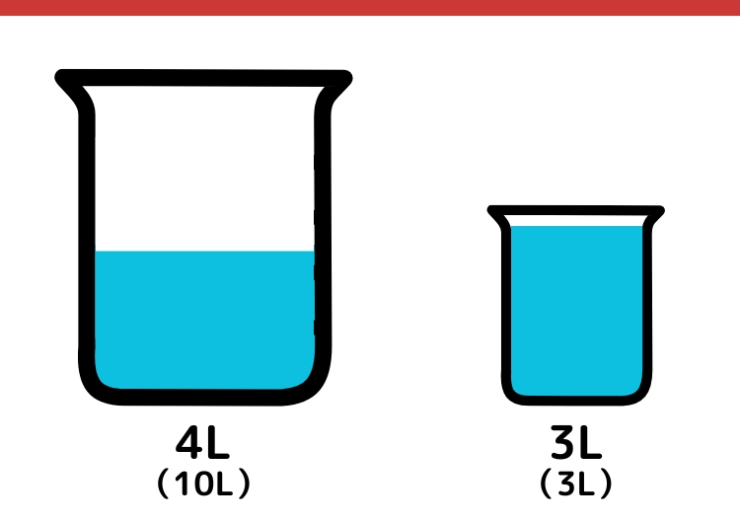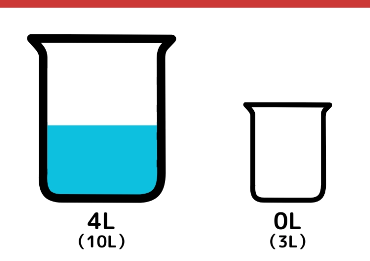 CULTURE 2025.02.10【クイズ】あの大企業も入社問題に採用している?「10Lと3Lの容器で1L」をはかるには?某一流企業の入社問題としても出題されている論理クイズを出題。一見簡単そうに見えるけど、実は意外と難しい!答えになかなか辿り着けなくても解説を読めばスッキリするかも!10L容器に入っている水を3L容器に移します。3L容器の水を再び捨て、空にします。1234