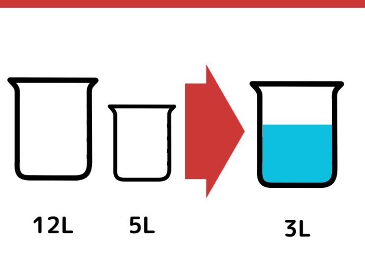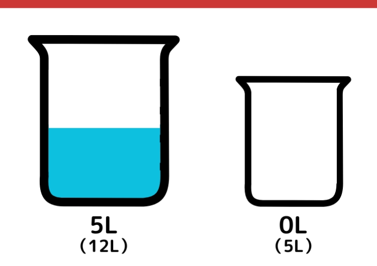 CULTURE 2025.02.12【クイズ】有名企業の入社問題にチャレンジ!?「12Lと5Lの容器で3L」をはかるには?某一流企業の入社問題としても出題されている論理クイズを出題。一見簡単そうに見えるけど、実は意外と難しい!答えになかなか辿り着けなくても解説を読めばスッキリするかも!このクイズ正しく解ける?水がちょうど3L入る容器が手元にありません。12Lと5Lの容器を使って、ちょうど3Lの水を計る方法を考えてください。※今回ご紹介する回答は、解き方の1つです。他に回答を導き出す方法がある場合があります。※水が溢れることや残っていることは一旦無視します。イラストで答えを解説!まず、5Lの容器を満たします。5L容器から12L容器に水を移します。123