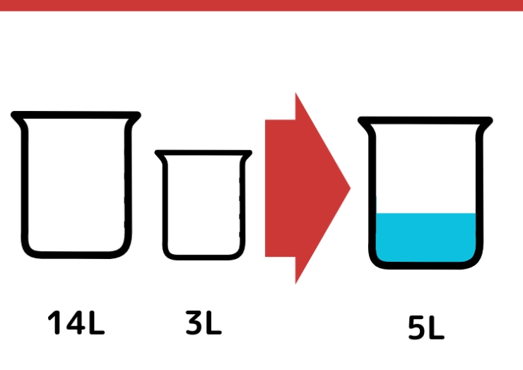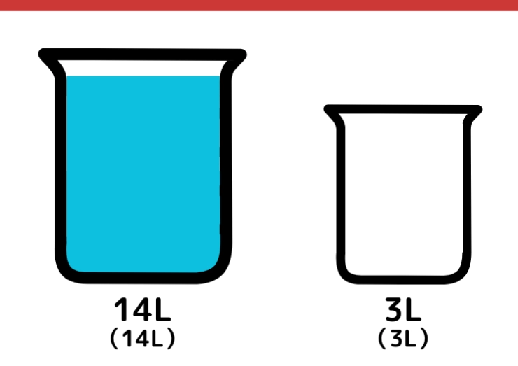 CULTURE 2025.02.13【クイズ】正解できたら一流企業に入社できるかも?「14Lと3Lの容器で5L」をはかるには?某一流企業の入社問題としても出題されている論理クイズを出題。一見簡単そうに見えるけど、実は意外と難しい!答えになかなか辿り着けなくても解説を読めばスッキリするかも!このクイズ正しく解ける?水がちょうど5L入る容器が手元にありません。14Lと3Lの容器を使って、ちょうど5Lの水を計る方法を考えてください。※今回ご紹介する回答は、解き方の1つです。他に回答を導き出す方法がある場合があります。※水が溢れることや残っていることは一旦無視します。イラストで答えを解説!まず、14Lの容器を満たします。1234