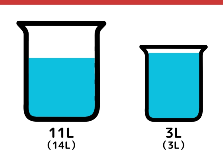 CULTURE 2025.02.13【クイズ】正解できたら一流企業に入社できるかも?「14Lと3Lの容器で5L」をはかるには?某一流企業の入社問題としても出題されている論理クイズを出題。一見簡単そうに見えるけど、実は意外と難しい!答えになかなか辿り着けなくても解説を読めばスッキリするかも!14L容器から3L容器に水を移します。3L容器に入っていた水を全て捨てて殻にします。1234