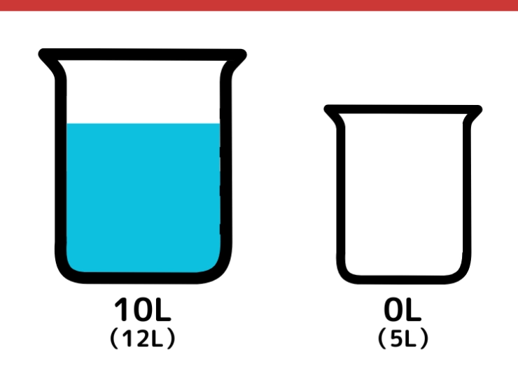 CULTURE 2025.02.16【クイズ】あの大企業も入社問題に採用している?「12Lと5Lの容器で3L」をはかるには?某一流企業の入社問題としても出題されている論理クイズを出題。一見簡単そうに見えるけど、実は意外と難しい!答えになかなか辿り着けなくても解説を読めばスッキリするかも!再び5L容器に入っている水を12L容器に移します。再度5L容器を水で満杯にします。1234