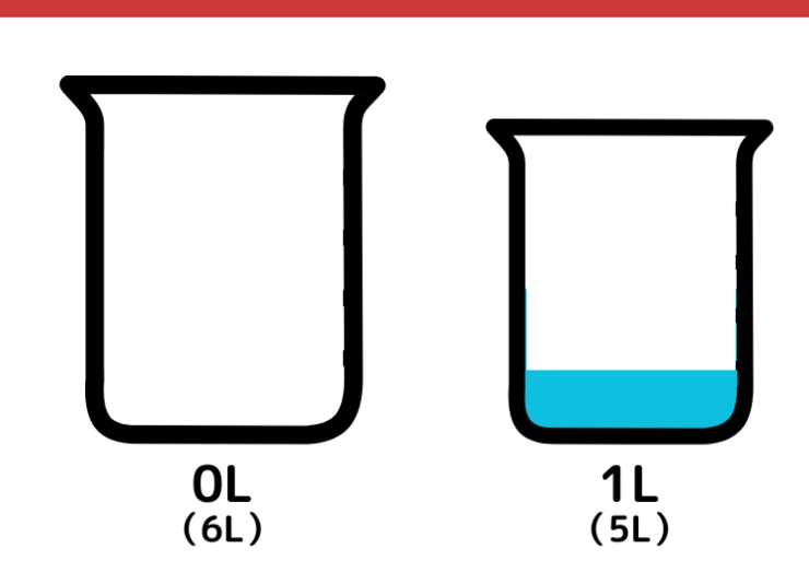 CULTURE 2025.02.19【クイズ】有名企業の入社問題にチャレンジ!?「6Lと5Lの容器で2L」をはかるには?某一流企業の入社問題としても出題されている論理クイズを出題。一見簡単そうに見えるけど、実は意外と難しい!答えになかなか辿り着けなくても解説を読めばスッキリするかも!6L容器に入っていた1Lの水を5L容器に移します。再度6L容器を水で満杯にします。1234