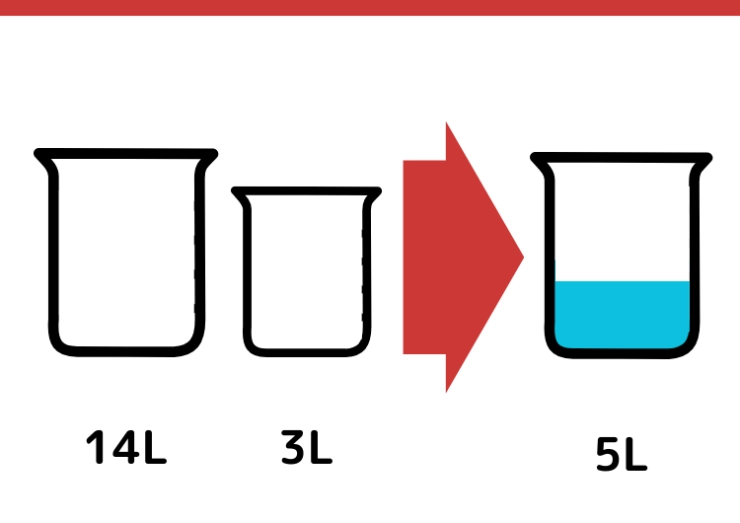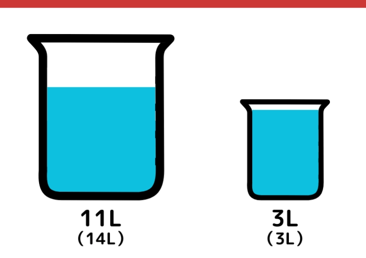 CULTURE 2025.02.26【クイズ】正解できたら一流企業に入社できるかも?「14Lと3Lの容器で5L」をはかるには?某一流企業の入社問題としても出題されている論理クイズを出題。一見簡単そうに見えるけど、実は意外と難しい!答えになかなか辿り着けなくても解説を読めばスッキリするかも!このクイズ正しく解ける?水がちょうど5L入る容器が手元にありません。14Lと3Lの容器を使って、ちょうど5Lの水を計る方法を考えてください。※今回ご紹介する回答は、解き方の1つです。他に回答を導き出す方法がある場合があります。※水が溢れることや残っていることは一旦無視します。イラストで答えを解説!まず、14Lの容器を満たします。14L容器から3L容器に水を移します。123