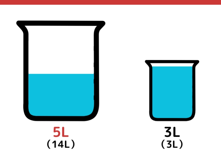 CULTURE 2025.02.26【クイズ】正解できたら一流企業に入社できるかも?「14Lと3Lの容器で5L」をはかるには?某一流企業の入社問題としても出題されている論理クイズを出題。一見簡単そうに見えるけど、実は意外と難しい!答えになかなか辿り着けなくても解説を読めばスッキリするかも!再び3L容器の水を捨てて空にします。再度14L容器から3L容器に水を移します。そうすると3Lだけ水が移動するので、14L容器にはちょうど5Lの水が残ります。正解に辿り着けましたか?意外と頭を使うこのクイズ。通勤途中や寝る前などのすきま時間にandGIRL webで頭の体操をしてみてくださいね!文/andGIRLweb編集部123