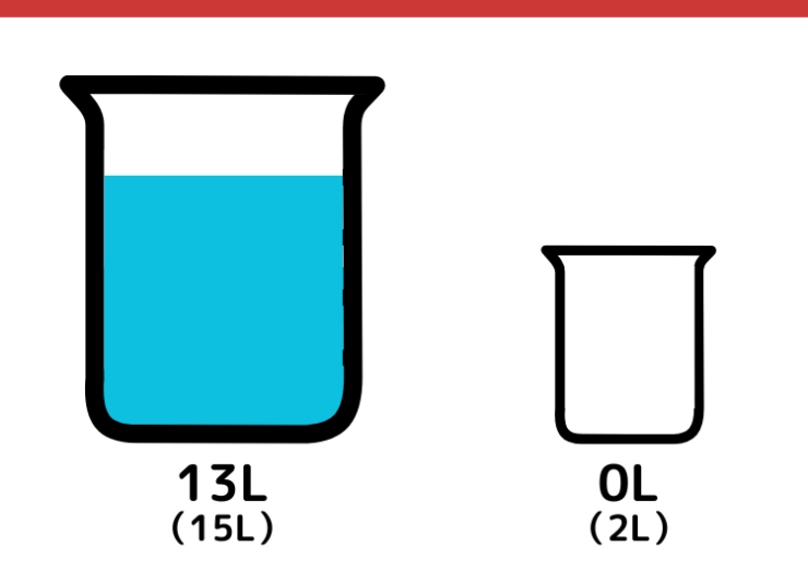 CULTURE 2025.03.01【クイズ】難しそうに見えて実は簡単?「15Lと2Lの容器で7L」をはかるには?某一流企業の入社問題としても出題されている論理クイズを出題。一見簡単そうに見えるけど、実は意外と難しい!答えになかなか辿り着けなくても解説を読めばスッキリするかも!2L容器に入っている水を捨てて空にします。15L容器から2L容器に再び水を移します。1234