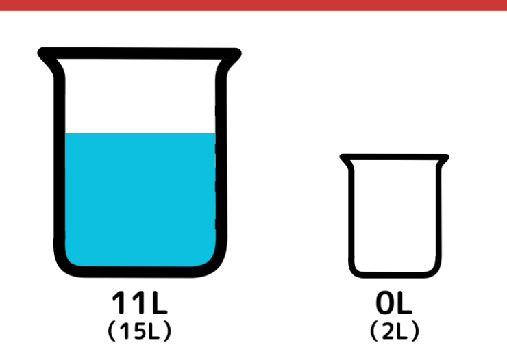 CULTURE 2025.03.01【クイズ】難しそうに見えて実は簡単?「15Lと2Lの容器で7L」をはかるには?某一流企業の入社問題としても出題されている論理クイズを出題。一見簡単そうに見えるけど、実は意外と難しい!答えになかなか辿り着けなくても解説を読めばスッキリするかも!再び2L容器に入っていた水を全て捨てます。再度15L容器から2L容器に水を移します。1234