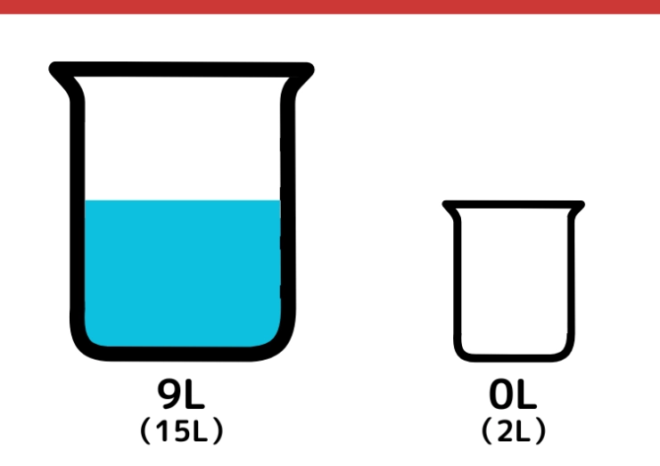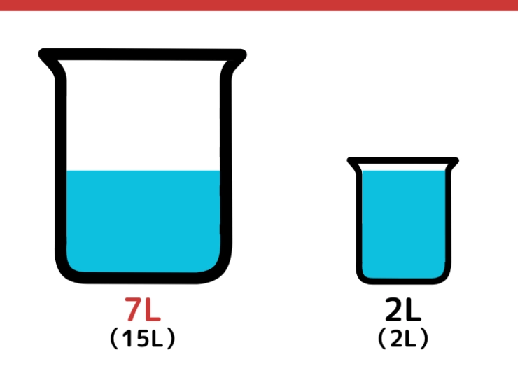 【クイズ】難しそうに見えて実は簡単?「15Lと2Lの容器で7L」をはかるには?