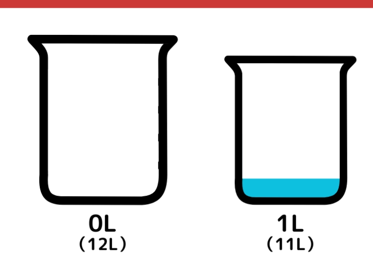 CULTURE 2025.03.05【クイズ】正解できたら一流企業に入社できるかも?「12Lと11Lの容器で3L」をはかるには?某一流企業の入社問題としても出題されている論理クイズを出題。一見簡単そうに見えるけど、実は意外と難しい!答えになかなか辿り着けなくても解説を読めばスッキリするかも!11L容器の水を全て空にします。12L容器に入っていた1Lの水を11L容器に移します。12345