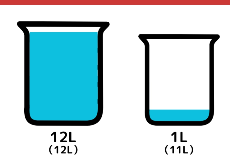 CULTURE 2025.03.05【クイズ】正解できたら一流企業に入社できるかも?「12Lと11Lの容器で3L」をはかるには?某一流企業の入社問題としても出題されている論理クイズを出題。一見簡単そうに見えるけど、実は意外と難しい!答えになかなか辿り着けなくても解説を読めばスッキリするかも!再び12L容器を水で満杯にします。再度12L容器から11L容器に水を移します。11L容器にはすでに1Lの水が入っていたので、10Lの水が移り、12L容器には2Lの水が残ります。12345