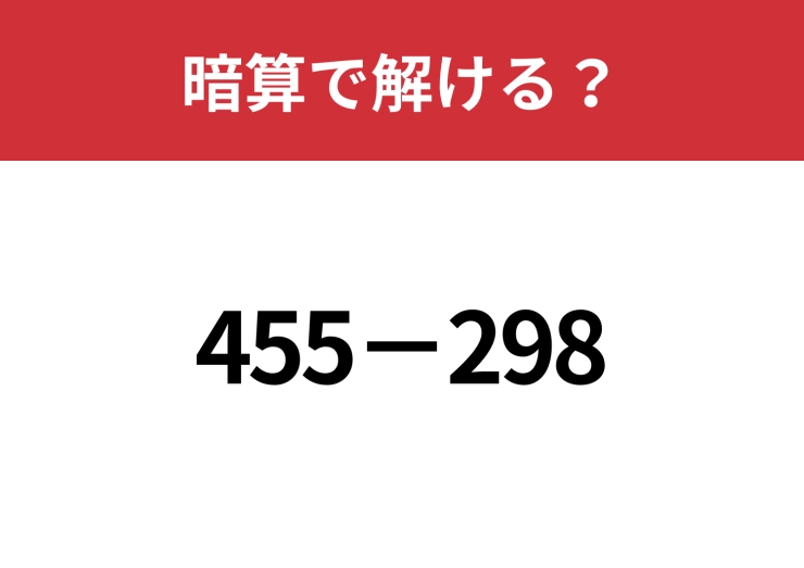 簡単に解ける方法、知ってますか?「455−298」暗算で解ける?