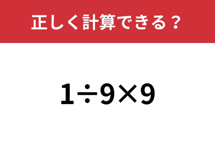 簡単そうに見えても不正解が続出!?「1÷9×9」正しく計算できる?