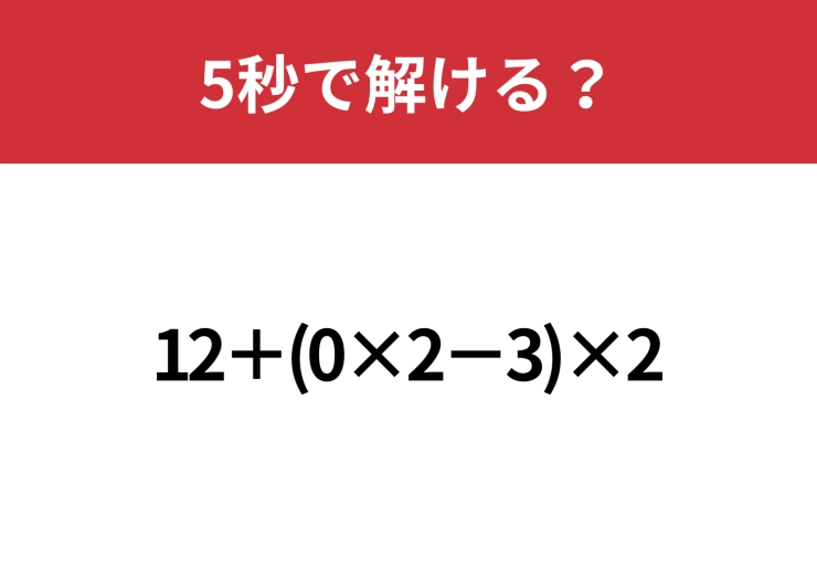 0が入ってるから簡単かも?「12+(0×2−3)×2」5秒で解ける?
