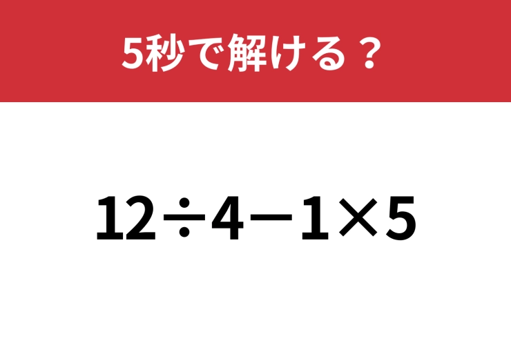 大人なら間違えずに解けるはず!?「12÷4−1×5」5秒で解ける?