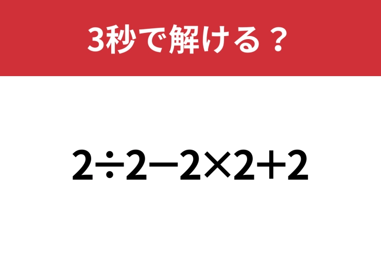 大人なら正解してほしい問題!「2÷2−2×2+2」3秒で解ける?