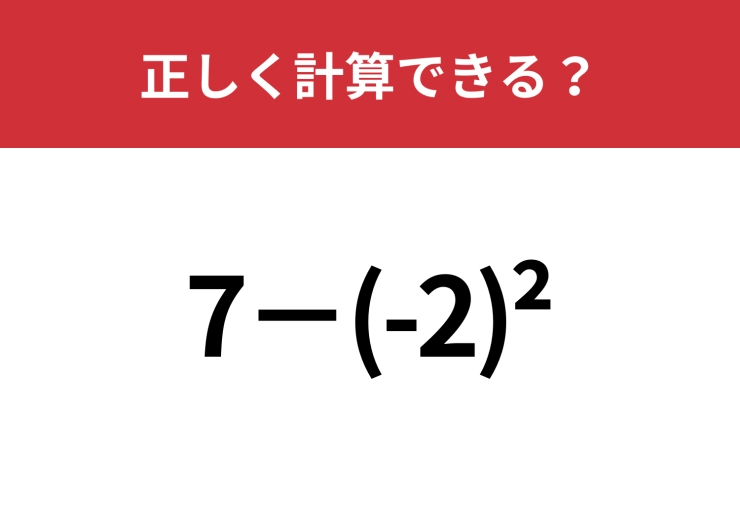 かっこの右上についた「2」の意味ってなんだっけ?「7−(-2)^2」正しく計算できる?