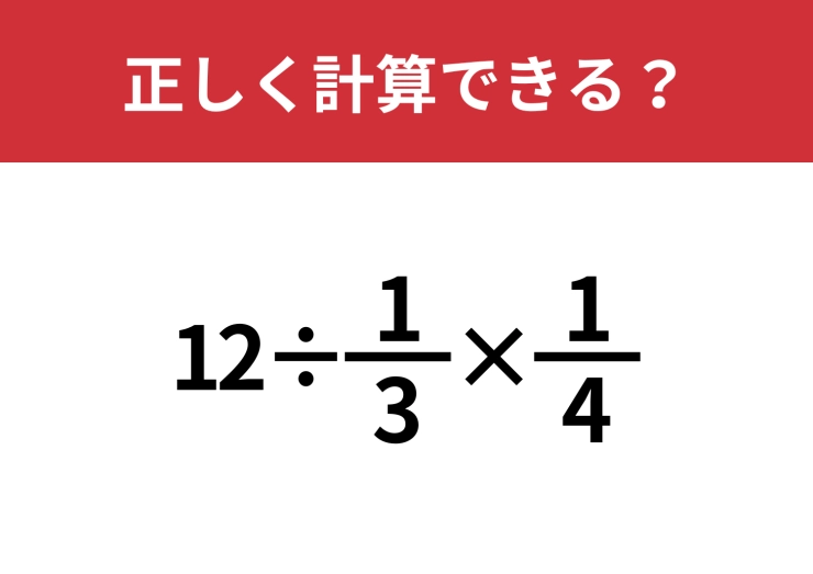 分数の計算って覚えてる?「12÷1/3×1/4」正しく計算できる?
