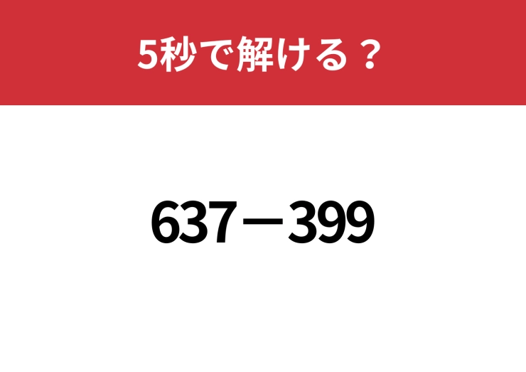 簡単に解く方法を考えてみて!「637−399」5秒で解ける?