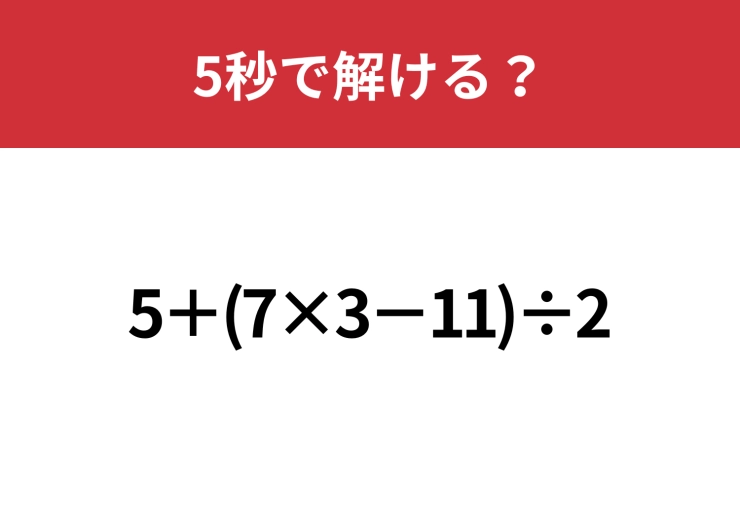 この問題は正解できるはず?「5+(7×3−11)÷2」5秒で解ける?