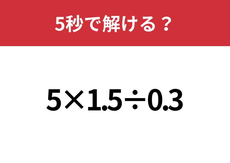 小数の計算は意外と難しいかも?「5×1.5÷0.3」5秒で解ける?