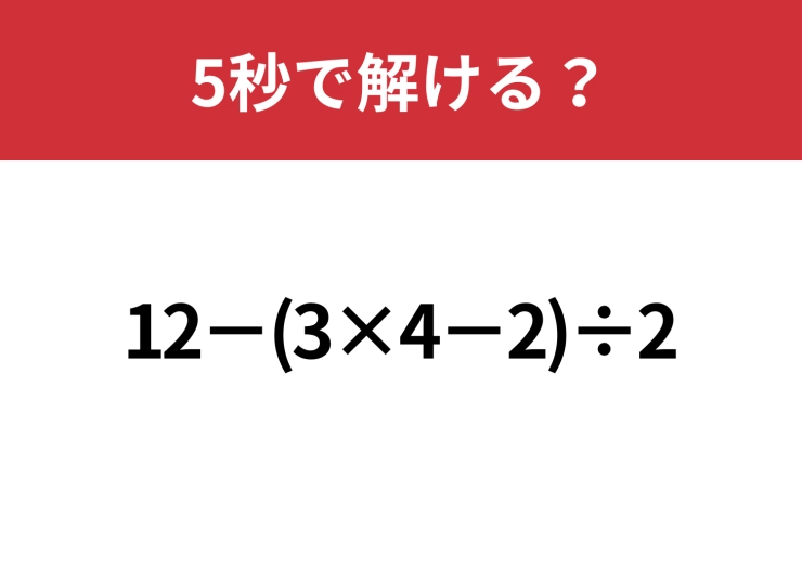 どこから計算するのか迷うかも?「12−(3×4−2)÷2」5秒で解ける?