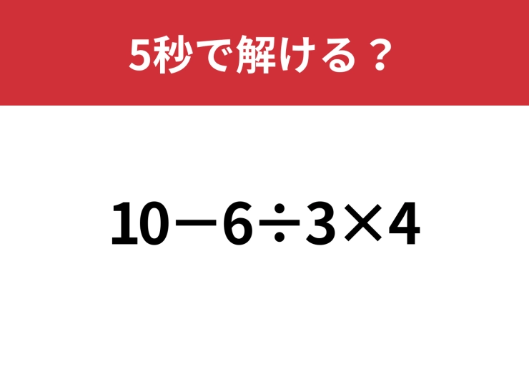 どこから計算するのが正しいやり方?「12−4÷2×2」5秒で解ける?