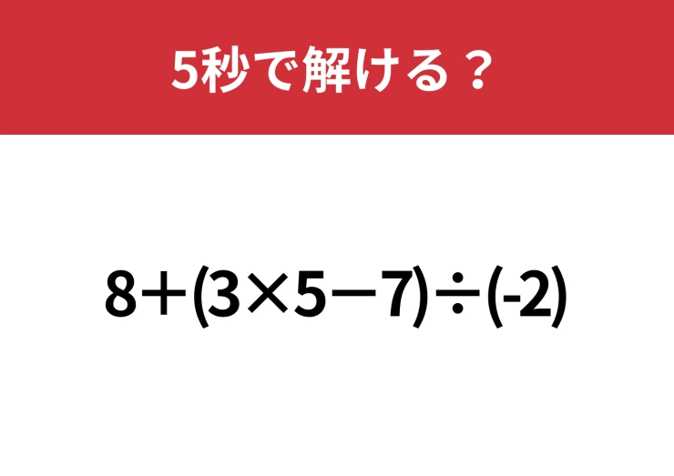 マイナスの計算には注意して!「8+(3×5−7)÷(-2)」5秒で解ける?