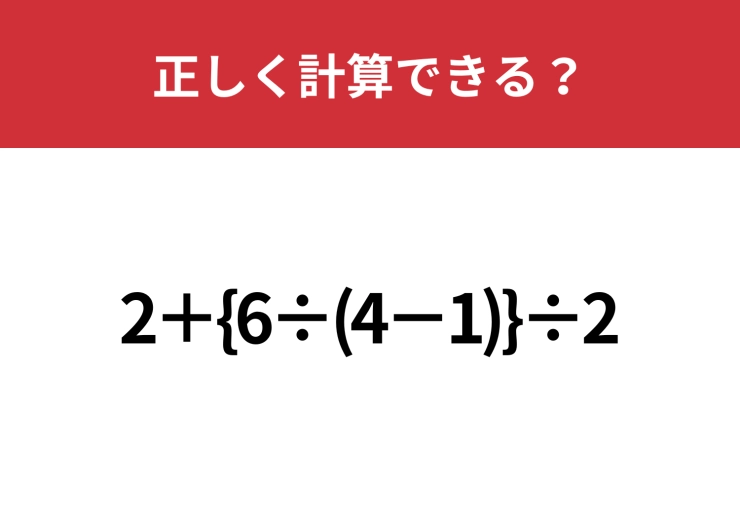 二つのかっこはどうすればいい?「2+{6÷(4−1)}÷2」正しく計算できる?