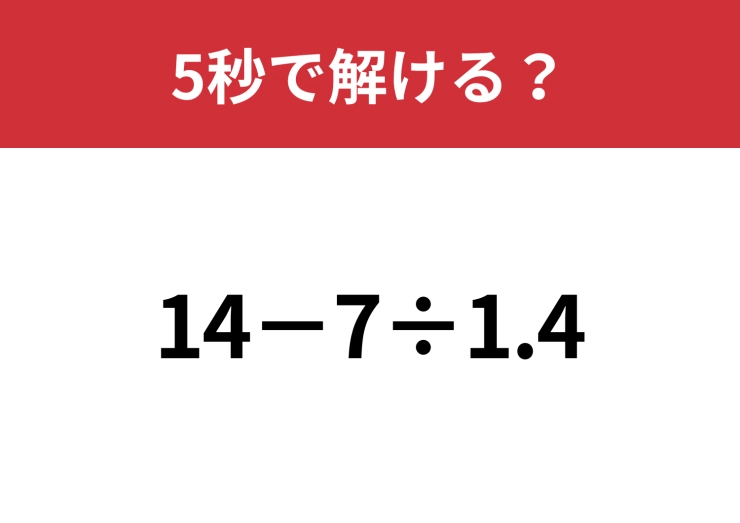 油断してると間違えるかも!?「14−7÷1.4」5秒で解ける?