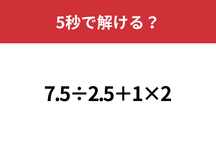 小数の計算は意外と難しいかも?「7.5÷2.5+1×2」5秒で解ける?