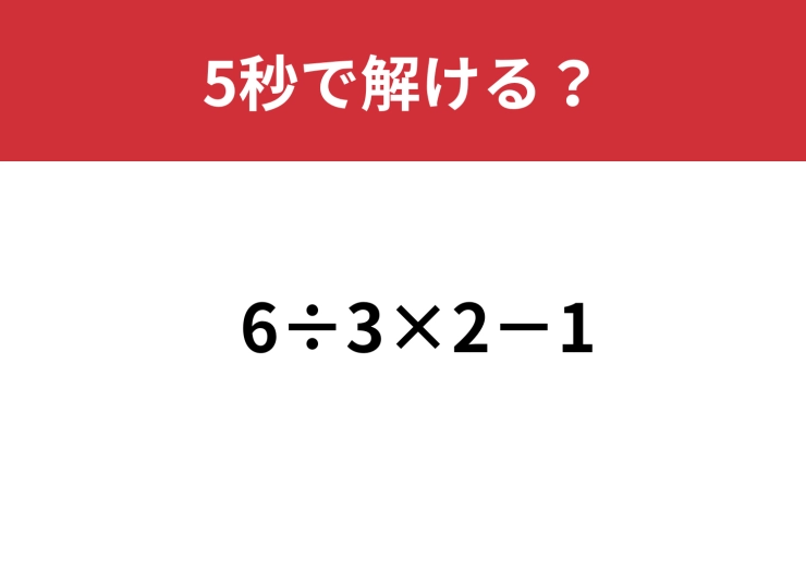 大人でも解けない人は多いかも?「6÷3×2−1」5秒で解ける?