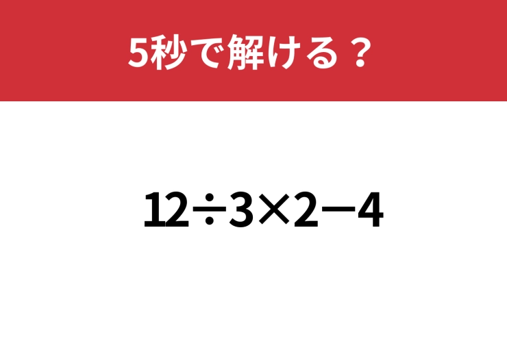 大人なら解けないと恥ずかしいかも!?「12÷3×2−4」5秒で解ける?
