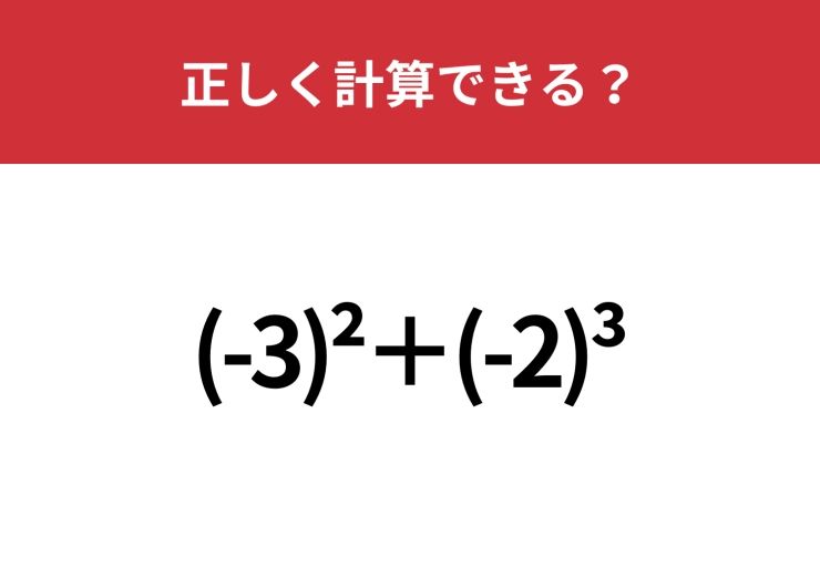 賢い人もこの問題は間違えるかも!?「(-3)^2+(-2)^3」正しく計算できる?