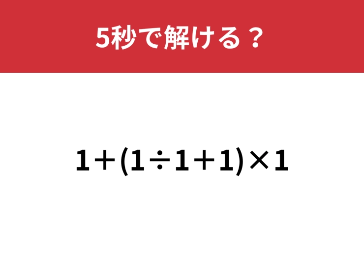 油断してると間違えるかも!?「1+(1÷1+1)×1」5秒で解ける?
