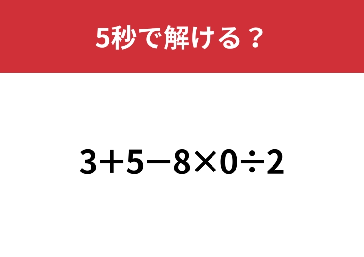 気づいた人は1秒もかからず解けるかも!「3+5−8×0÷2」5秒で解ける?