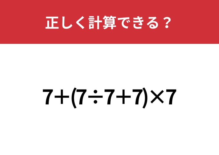 あなたは正しく計算できますか?「7+(7÷7+7)×7」5秒で解ける?