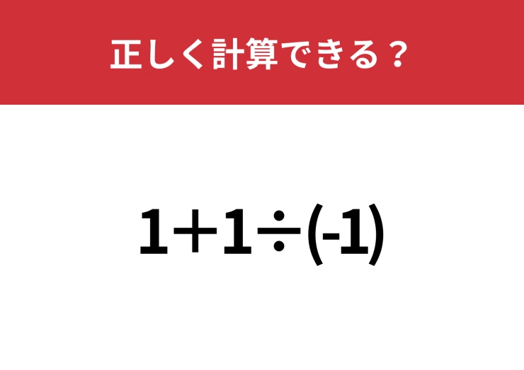 油断してると間違えるかも!?「1+1÷(-1)」正しく計算できる?