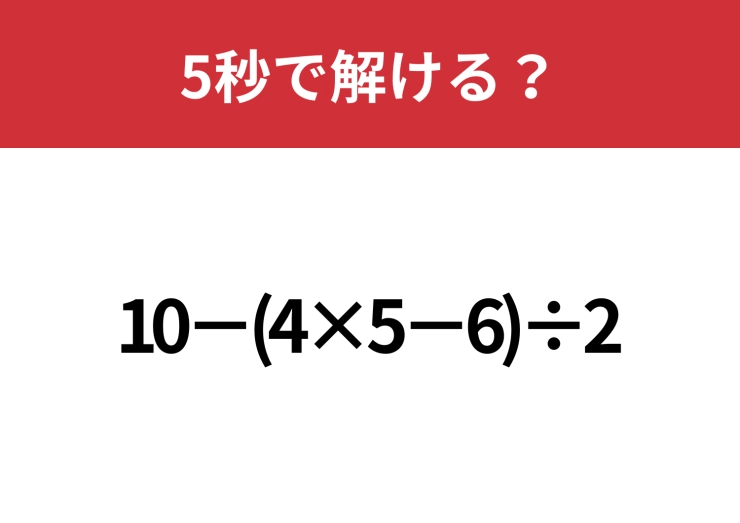 大人でも間違える人が多いかも!?「10−(4×5−6)÷2」5秒で解ける?