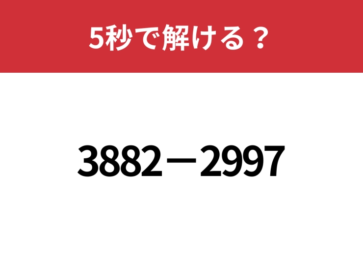 暗算で解けたら自慢できるかも!?「3882−2997」5秒で解ける?