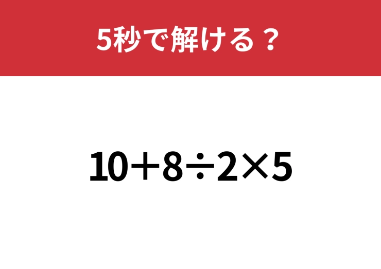 大人でも間違える人は意外と多い!?「10+8÷2×5」5秒で解ける?