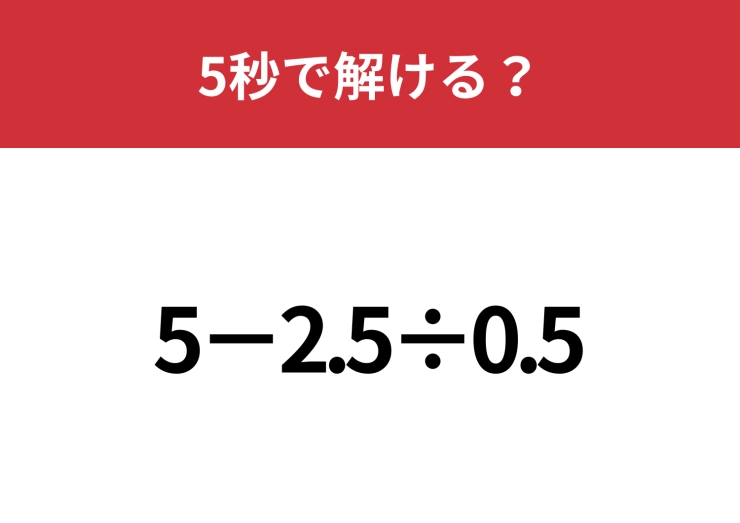 小数の計算って意外と難しいかも?「5−2.5÷0.5」5秒で解ける?