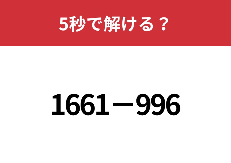 簡単な解き方を知れば暗算で解けるはず!「1661−996」5秒で解ける?