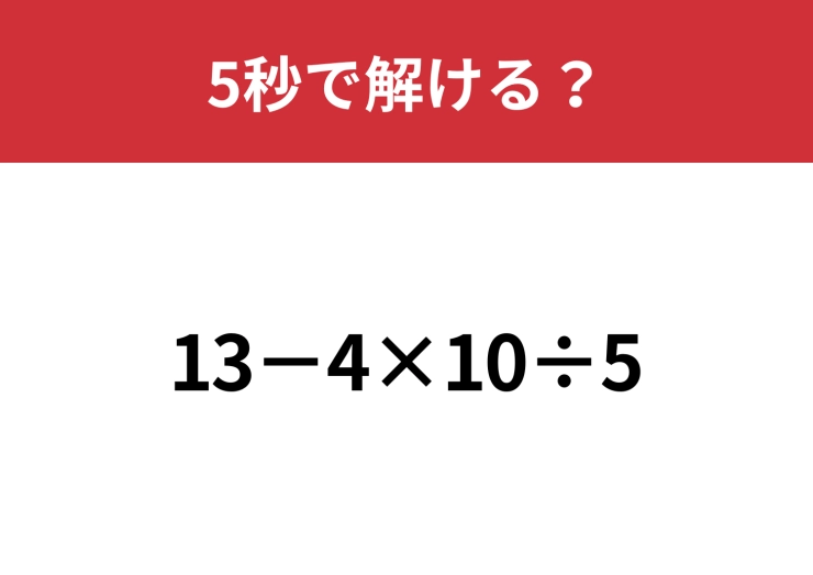 大人なら間違えずに計算できるはず?「13−4×10÷5」5秒で解ける?