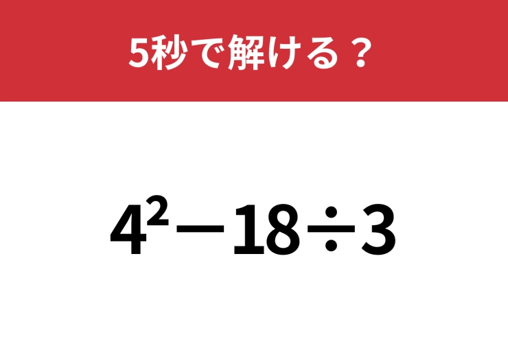 やり方を忘れている人が多いかも!?「4^2−18÷3」5秒で解ける?