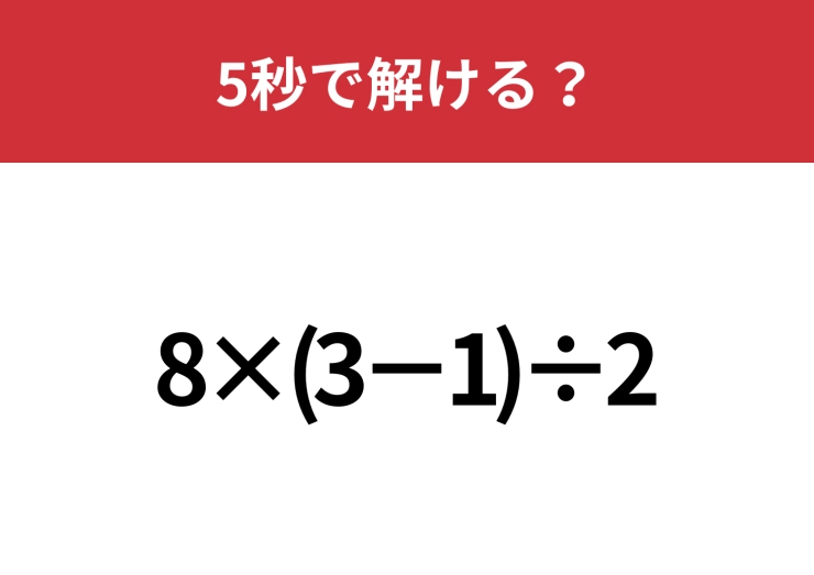 シンプルだけど解き方に迷うかも!?「8×(3−1)÷2」5秒で解ける?