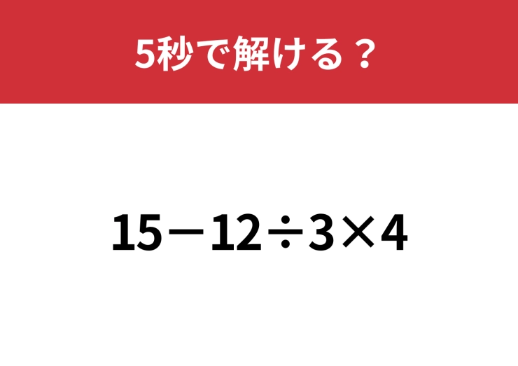 大人でも正しく解けない人が多いかも!?「15−12÷3×4」5秒で解ける?