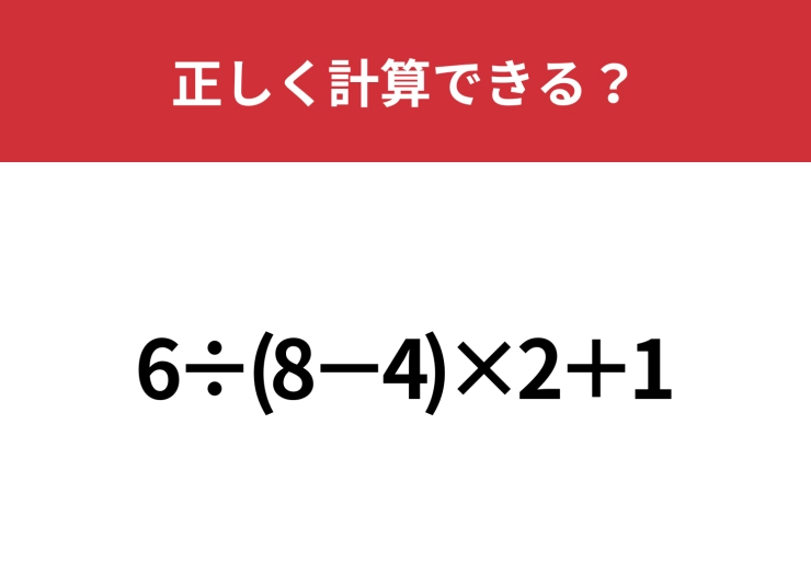 大人なら間違えずに計算したい!「6÷(8−4)×2+1」正しく計算できる?