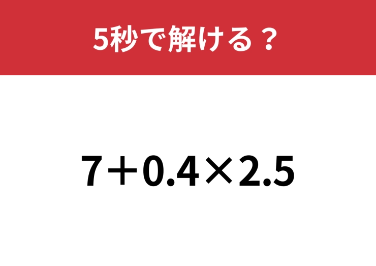 どこから計算するのが正解?「7+0.4×2.5」5秒で解ける?