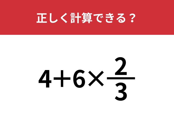 分数の計算って覚えてる?「4+6×2/3」正しく計算できる?